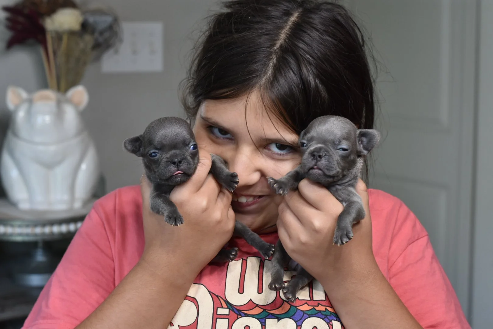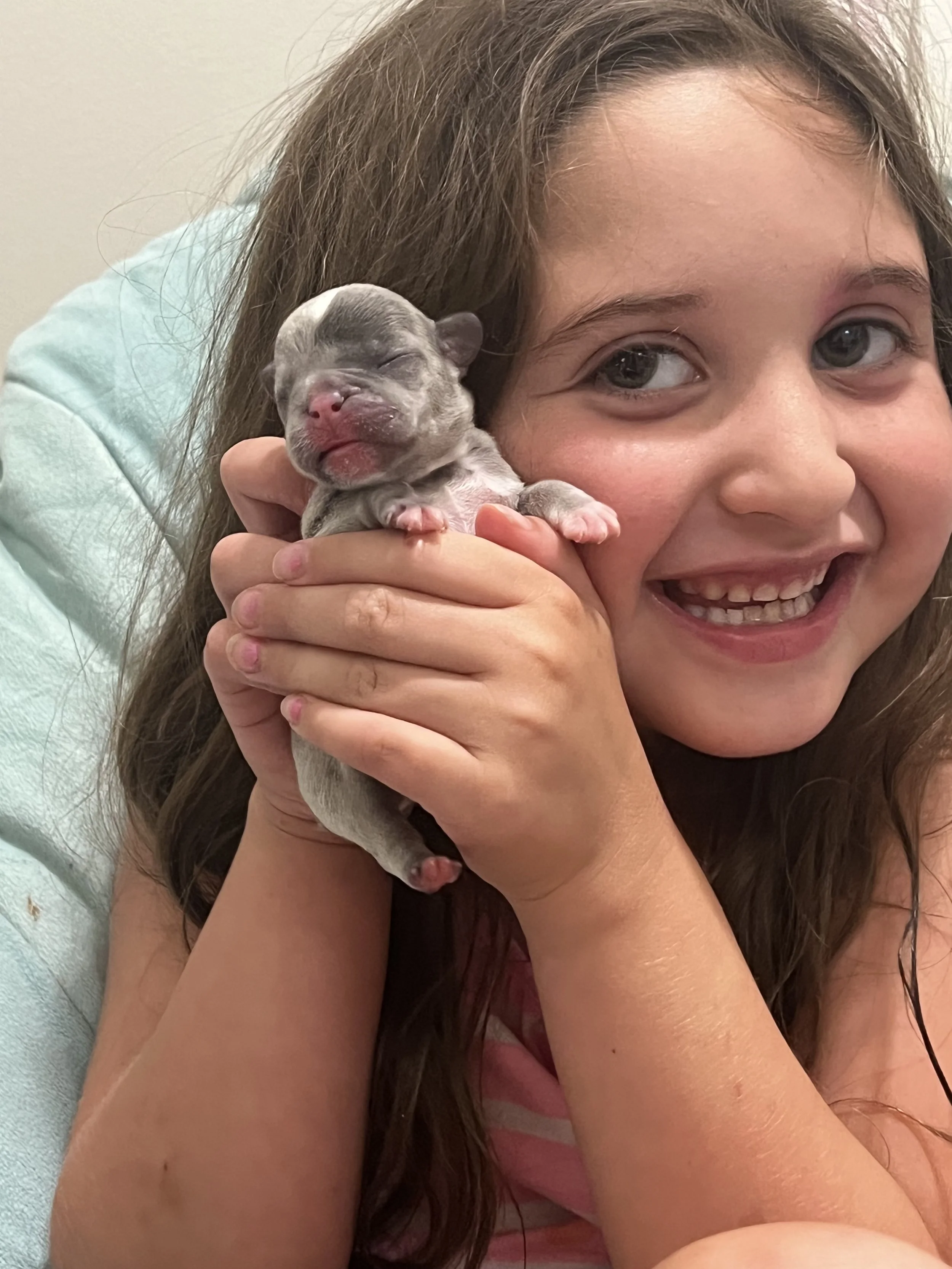 While I may be the face and the brains behind Something So Frenchie, my kids have been a huge help since day 1. They help me with feedings, cleanings, and of course what we like to call “puppy play time”. They spend so much time loving and caring for our babies and even help name them. I believe my kids are part of what sets Something So Frenchie apart from other programs, as all of our babies have the exposure and socialization with kids needed to ensure they enter homes with kids as smoothly as possible. Because my kids are such a big part of Something So Frenchie, below you can enjoy some photos of them helping me love and care for our babies.